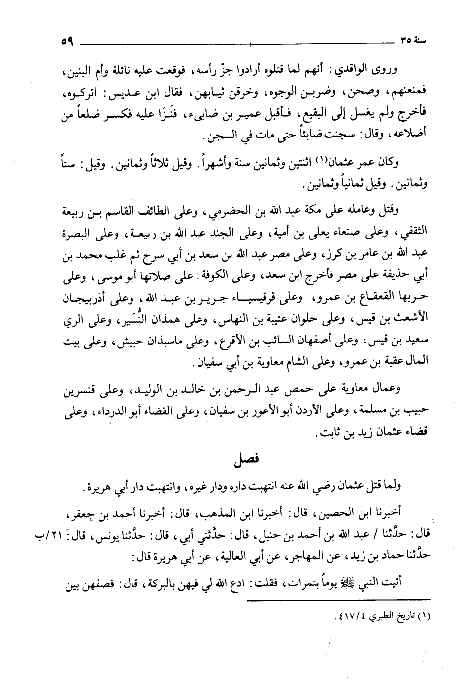 وقتل وعامله على مكة عَبْد اللَّهِ بن الحضرمي، وعلى الطائف القاسم بن ربيعة الثقفي، وعلى صنعاء يعلى بن أمية، وعلى الجند عَبْد اللَّهِ بن ربيعة، وعلى البصرة عَبْد اللَّهِ بن عامر بن كرز، وعلى مصر عَبْد اللَّهِ بن سعد بن أبي سرح ثم غلب مُحَمَّد بن أبي حذيفة على مصر فأخرج ابن سعد، وعلى الكوفة: على صلاتها أبو مُوسَى، وعلى حربها القعقاع بن عمرو، وعلى قرقيسياء جرير بن عَبْد اللَّهِ، وعلى أذربيجان الأشعث بن قيس، وعلى حلوان عتيبة بن النهاس، وعلى همذان النسير، وعلى الري سعيد بن قيس، وعلى أصفهان السائب بن الأقرع، وعلى ماسبذان حبيش، وعلى بيت المال عقبة بن عمرو، وعلى الشام معاوية بن أبي سفيان.