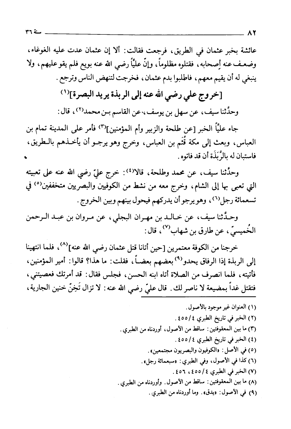 وحَدَّثَنَا سَيْفٌ، عَنْ مُحَمَّدٍ وَطَلْحَةَ، قَالا [4] : خَرَجَ عَلِيٌّ رَضِيَ اللَّهُ عَنْهُ عَلَى تَعْبِيَتِهِ الَّتِي تَعَبَّى بِهَا إِلَى الشَّامِ، وَخَرَجَ مَعَهُ مَنْ نَشِطَ مِنَ الْكُوفِيِّينَ وَالْبَصْرِيِّينَ مُتَخَفِّفِينَ [5] فِي تسعمائة رَجُلٍ [6] ، وَهُوَ يَرْجُو أَنْ يُدْرِكَهُمْ فَيَحُولَ بَيْنَهُمْ وَبَيْنَ الْخُرُوجِ.