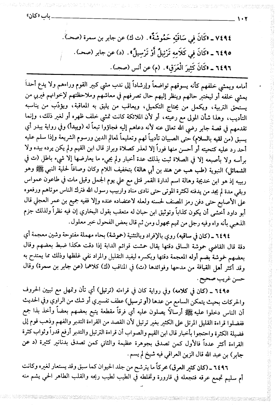 6496 - (كان كثير العرق) محركا ما يترشح من جلد الحيوان كما سبق وقد يستعار لغيره وكانت أم سليم تجمع عرقه فتجعله في قارورة وتخلطه في الطيب لطيب ريحه والقلب الطاهر الحي يشم منه