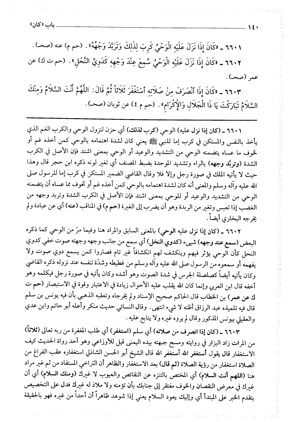 6602 - (كان إذا نزل عليه الوحي) بالمعنى السابق والمراد هنا وفيما مر من الوحي كما ذكره البعض (سمع عند وجهه شئ كدوي النحل) أي سمع من جانب وجهه وجهته صوت خفي كدوي النحل كأن الوحي يؤثر فيهم وينكشف لهم انكشافا غير تام فصاروا كمن يسمع دوي صوت ولا يفهمه أو سمعوه من الرسول صلى الله عليه وآله وسلم من غطيطه وشدة تنفسه عند نزوله ذكره القاضي