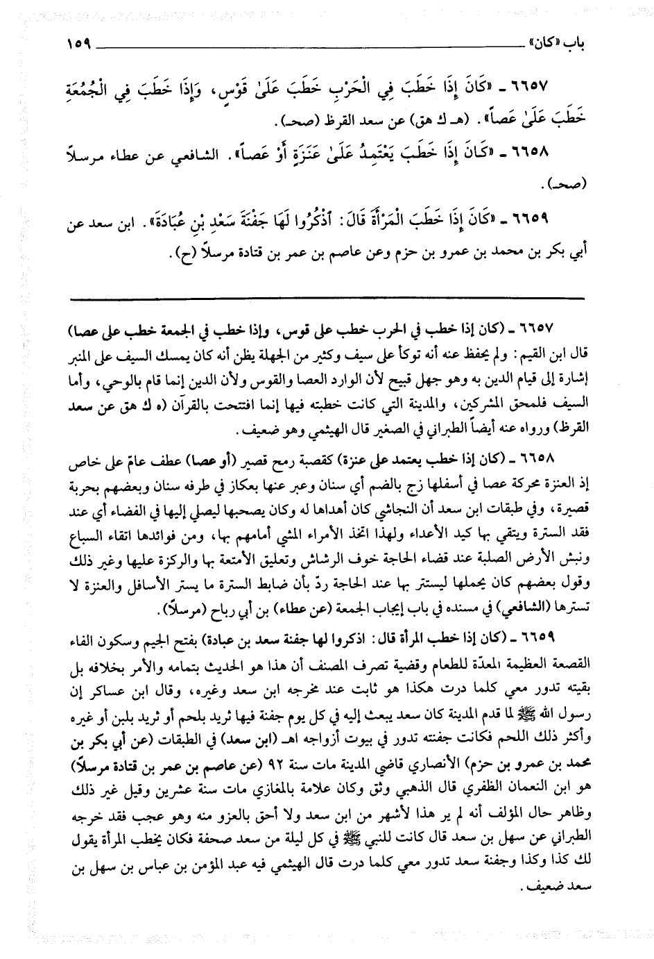 6657 - (كان إذا خطب في الحرب خطب على قوس، وإذا خطب في الجمعة خط ب على عصا)