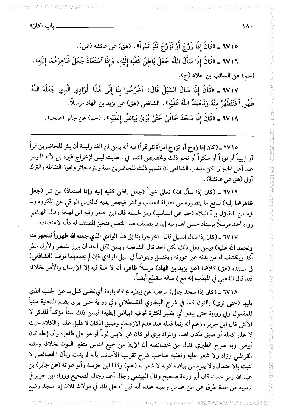 6717 - (كان إذا سال السيل قال اخرجوا بنا إلى هذا الوادي الذي جعله الله طهورا فنتطهر منه ونحمد الله عليه) فيسن فعل ذلك لكل أحد.