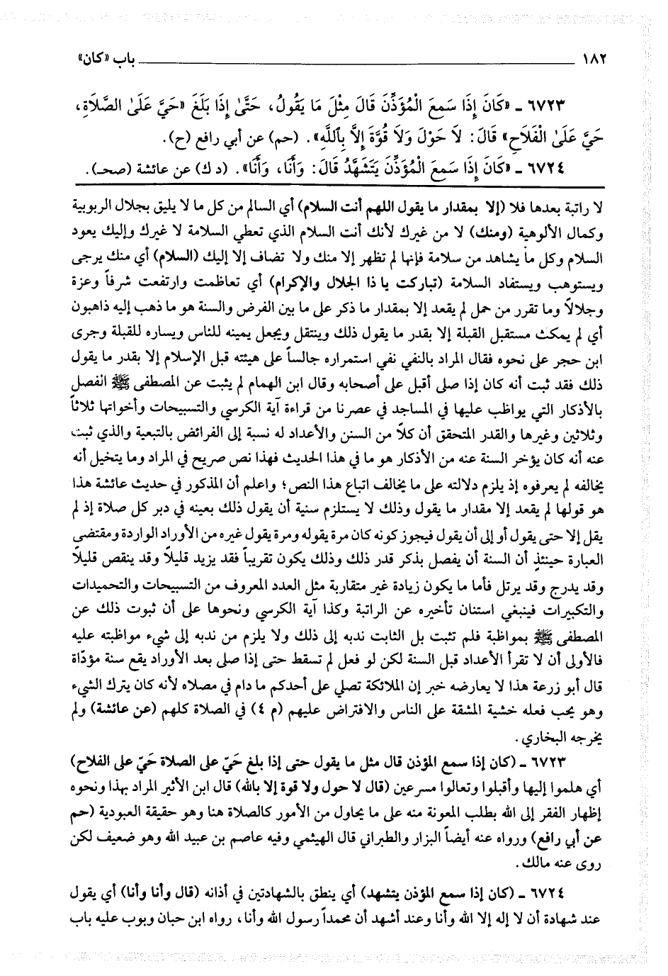 6723 - (كان إذا سمع المؤذن قال مثل ما يقول حتى إذا بلغ حي على الصلاة حي على الفلاح) أي هلموا إليها وأقبلوا وتعالوا مسرعين (قال لا حول ولا قوة إلا بالله) قال ابن الأثير : المراد بهذا ونحوه إظهار الفقر إلى الله بطلب المعونة منه على ما يحاول من الأمور كالصلاة هنا وهو حقيقة العبودية.