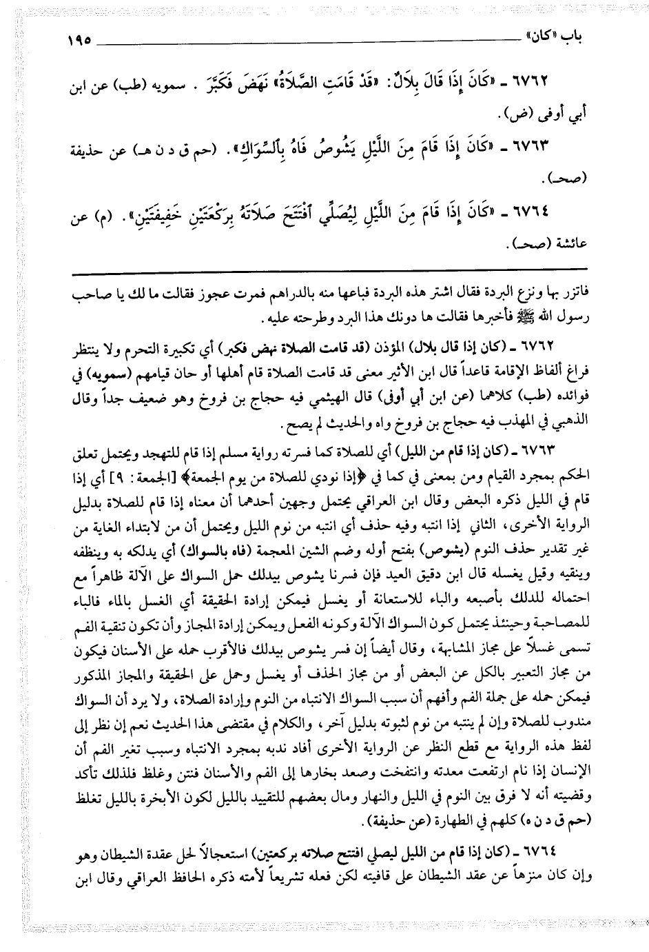 6764 - (كان إذا قام من الليل ليصلي افتتح صلاته بركعتين) استعجالا لحل عقدة الشيطان وهو وإن كان منزها عن عقد الشيطان على قافيته لكن فعله تشريعا لأمته ذكره الحافظ العراقي وقال ابن