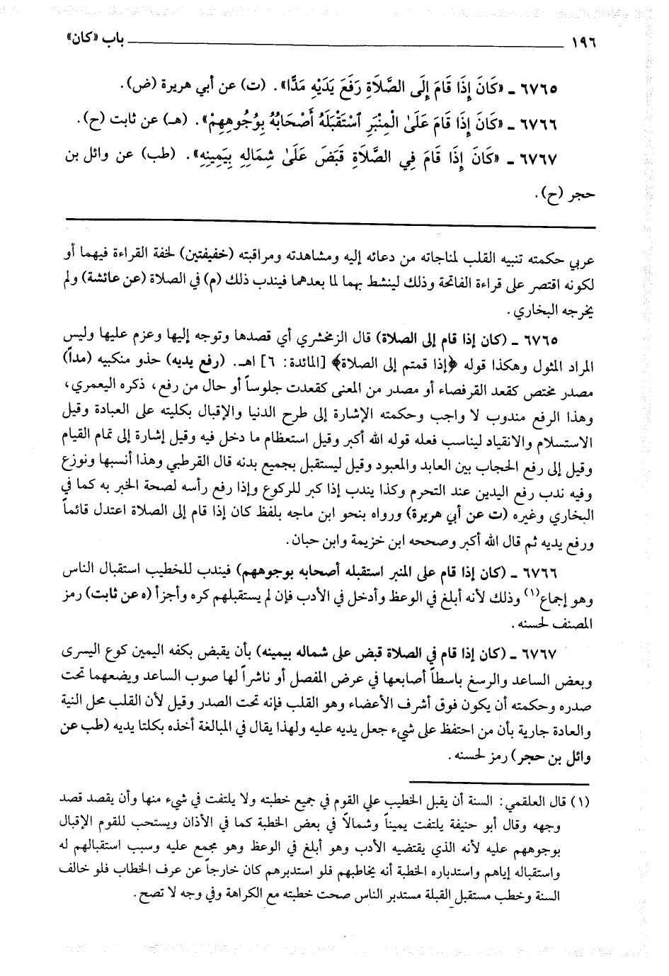 6765 - (كان إذا قام إلى الصلاة) قال الزمخشري: أي قصدها وتوجه إليها وعزم عليها وليس المراد المثول وهكذا قوله * (إذا قمتم إلى الصلاة) * اه.