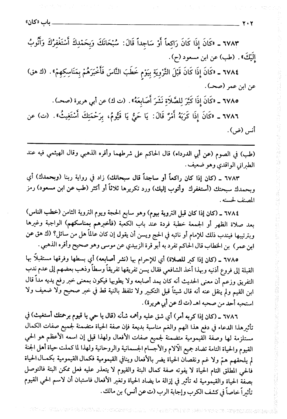 6786 - (كان إذا كربه أمر) أي شق عليه وأهمه شأنه (قال يا حي يا قيوم برحمتك أستغيث) في تأثير هذا الدعاء في دفع هذا الهم والغم مناسبة بديعة فإن صفة الحياة متضمنة لجميع صفات الكمال