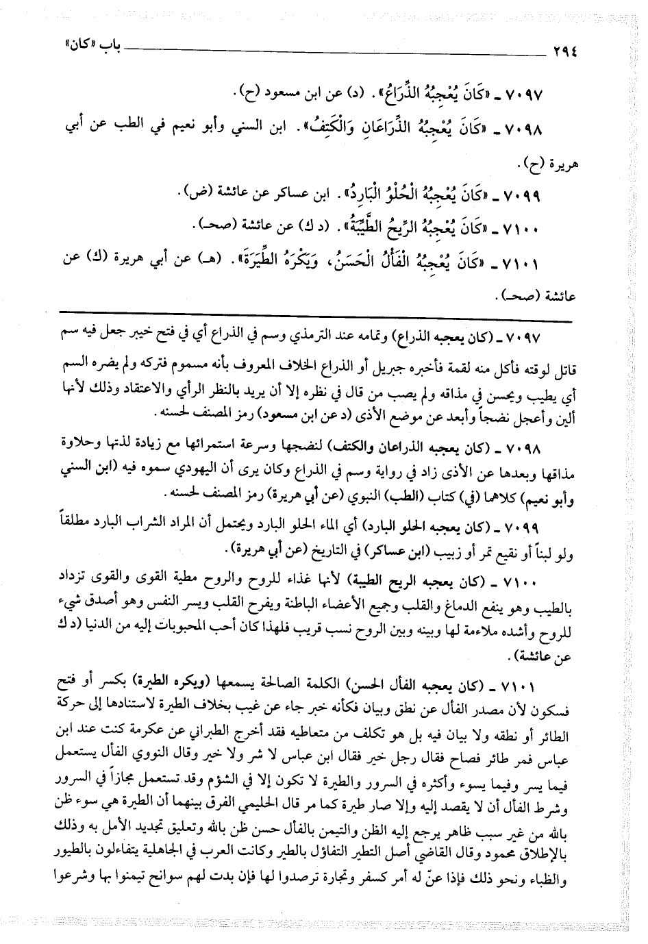 7098 - (كان يعجبه الذراعان والكتف) لنضجها وسرعة استمرائها مع زيادة لذتها وحلاوة