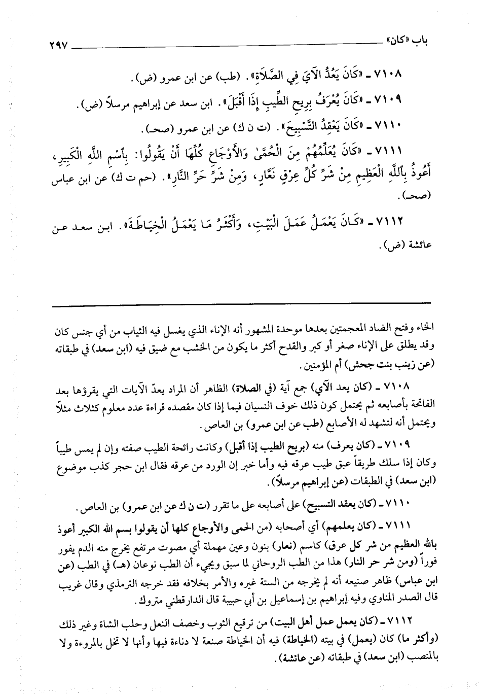 7108 - (كان يعد الآي) جمع آية (في الصلاة) الظاهر أن المراد يعد الآيات التي يقرؤها بعد الفاتحة بأصابعه ثم يحتمل كون ذلك خوف النسيان فيما إذا كان مقصده قراءة عدد معلوم كثلاث مثلا ويحتمل أنه لتشهد له الأصابع.