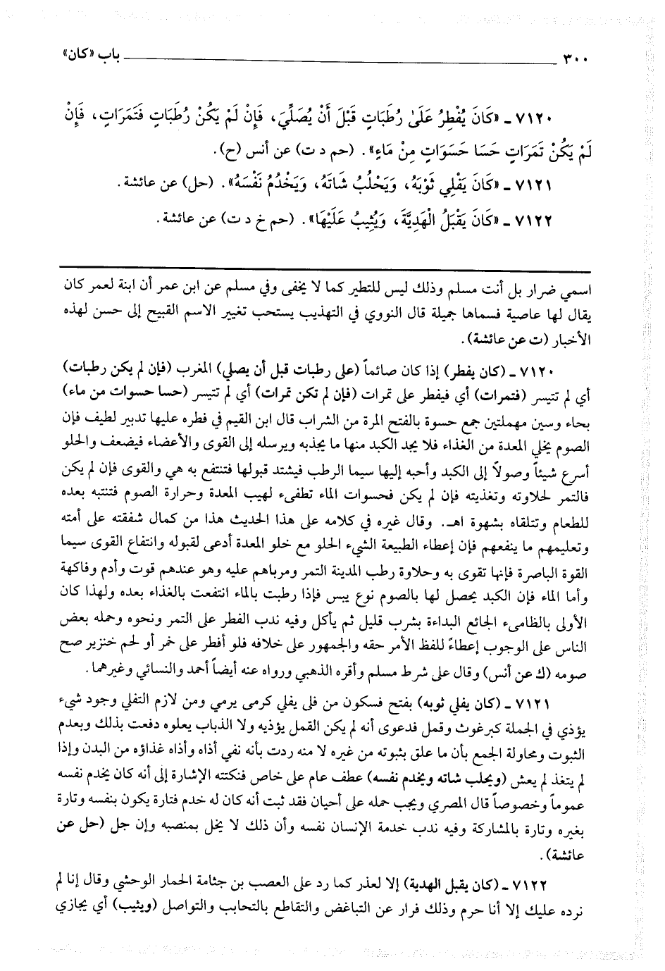 7121 - (كان يفلي ثوبه) بفتح فسكون من فلى يفلي كرمى يرمي ومن لازم التفلي وجود شئ يؤذي في الجملة كبرغوث وقمل فدعوى أنه لم يكن القمل يؤذيه ولا الذباب يعلوه دفعت بذلك وبعدم الثبوت ومحاولة الجمع بأن ما علق بثبوته من غيره لا منه ردت بأنه نفي أذاه وأذاه غذاؤه من البدن وإذا لم يتغذ لم يعش (ويحلب شاته ويخدم نفسه) عطف عام على خاص فنكتته الإشارة إلى أنه كان يخدم نفسه عموما وخصوصا قال المصري: ويجب حمله على أحيان فقد ثبت أنه كان له خدم فتارة يكون بنفسه وتارة بغيره وتارة بالمشاركة وفيه ندب خدمة الإنسان نفسه وأن ذلك لا يخل بمنصبه وإن جل.
