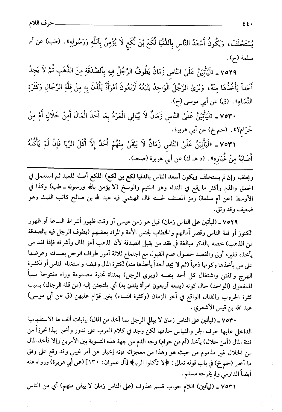 7531 - (ليأتين) اللام جواب قسم محذوف (على الناس زمان لا يبقى منهم) أي من الناس