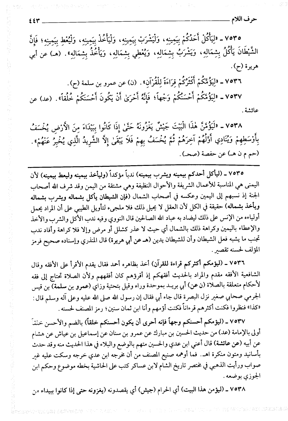 7537 - (ليؤمكم أحسنكم وجها فإنه أحرى أن يكون أحسنكم خلقا) بالضم والأحسن خلقا أولى بالإمامة.