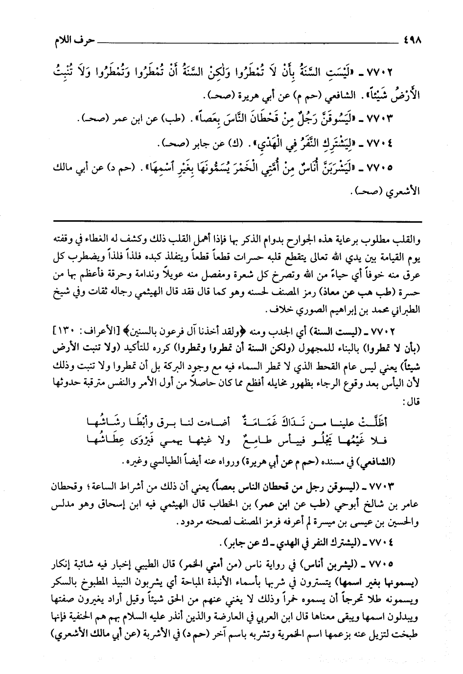 7703 - (ليسوقن رجل من قحطان الناس بعصا) يعني أن ذلك من أشراط الساعة ، وقحطان عامر بن شالخ أيوحى.