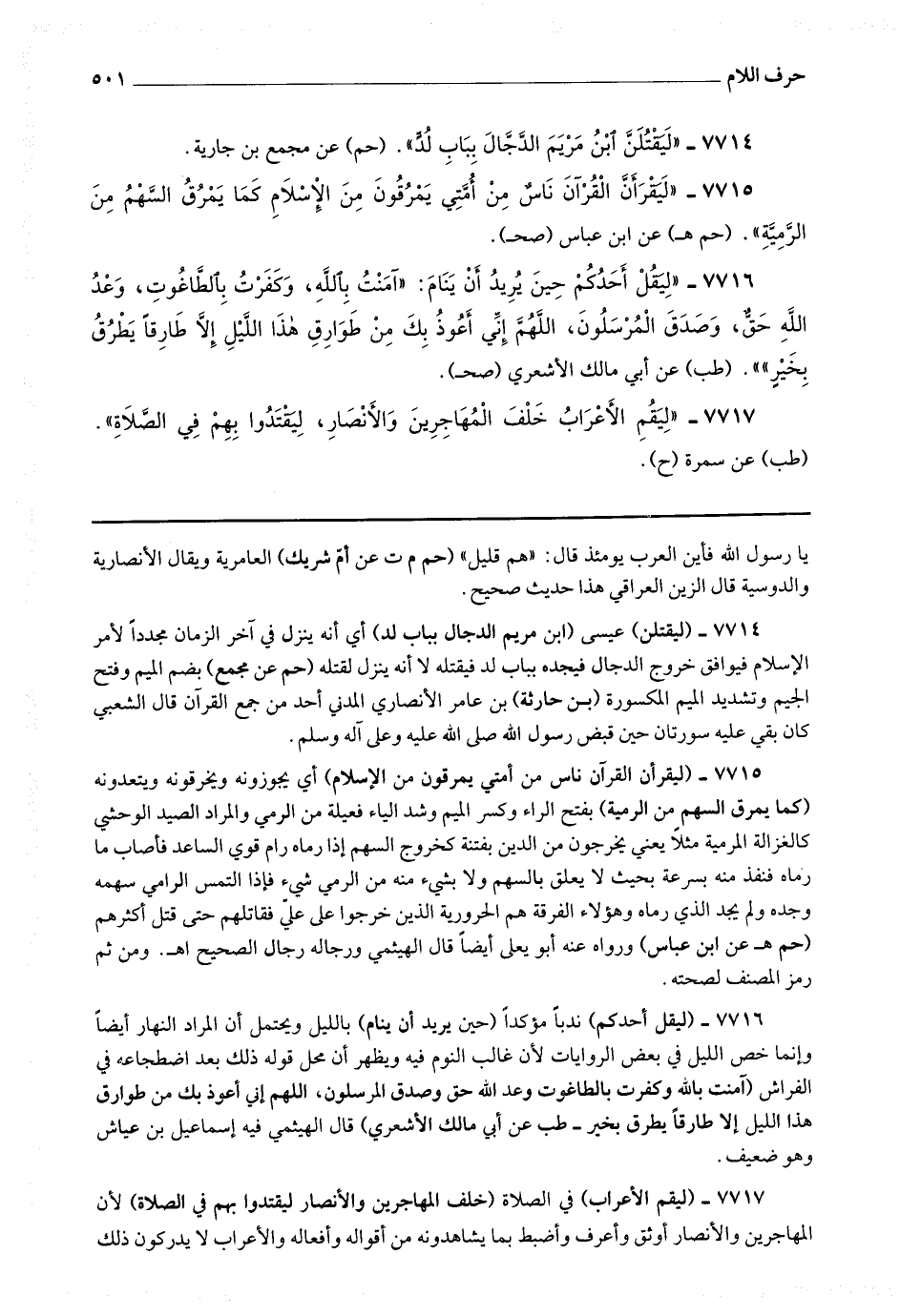 7717 - (ليقم الأعراب) في الصلاة (خلف المهاجرين والأنصار ليقتدوا بهم في الصلاة) لأن المهاجرين والأنصار أوثق وأعرف وأضبط بما يشاهدونه من أقواله وأفعاله والأعراب لا يدركون ذلك
