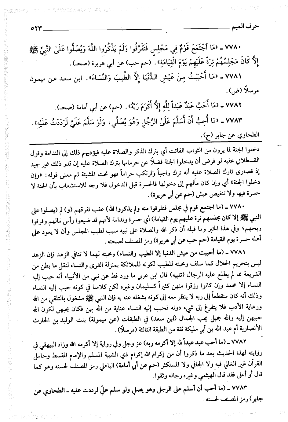 7780 - (ما اجتمع قوم في مجلس فتفرقوا منه ولم يذكروا الله) عقب تفرقهم (و) لم (يصلوا على النبي صلى الله عليه وسلم إلا كان مجلسهم ترة عليهم يوم القيامة) أي حسرة وندامة لأنهم قد ضيعوا رأس مالهم وفرقوا ربحهم وفي هذا الخبر وما قبله أن ذكر الله والصلاة على نبيه سبب لطيب المجلس وأن لا يعود على أهله حسرة يوم القيامة.