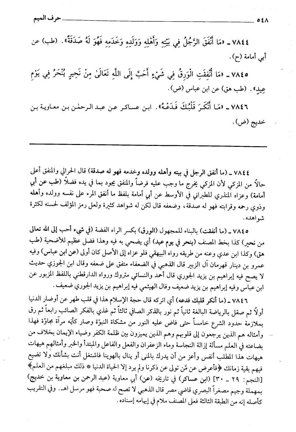 7844 - (ما أنفق الرجل في بيته وأهله وولده وخدمه فهو له صدقة) قال الحرالي : والمنفق أعلى حالا من المزكي لأن المزكي يخرج ما وجب عليه فرضا والمنفق يجود بما في يده فضلا.