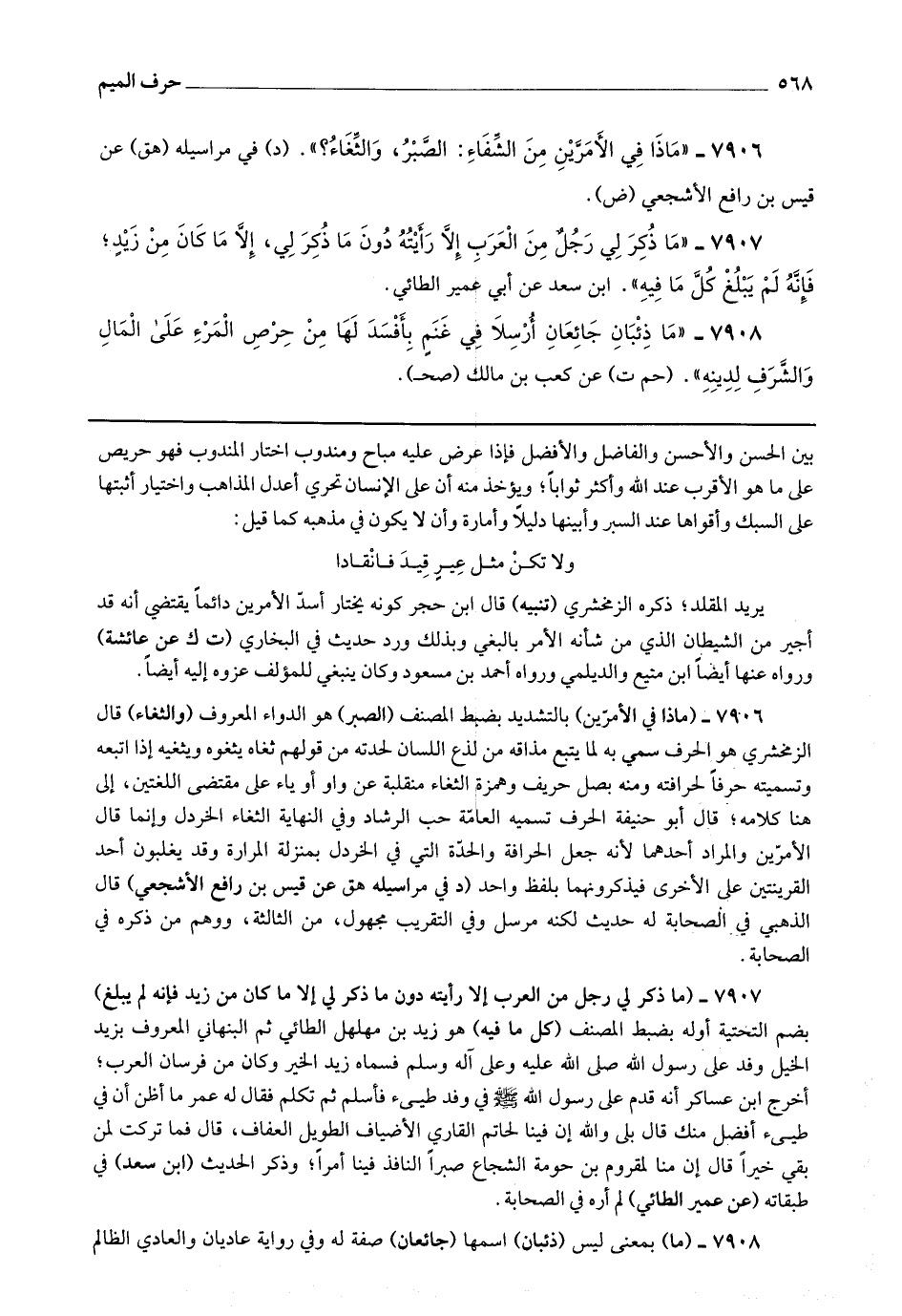 7908 - (ما) بمعنى ليس (ذئبان) اسمها (جائعان) صفة له وفي رواية عاديان والعادي الظالم