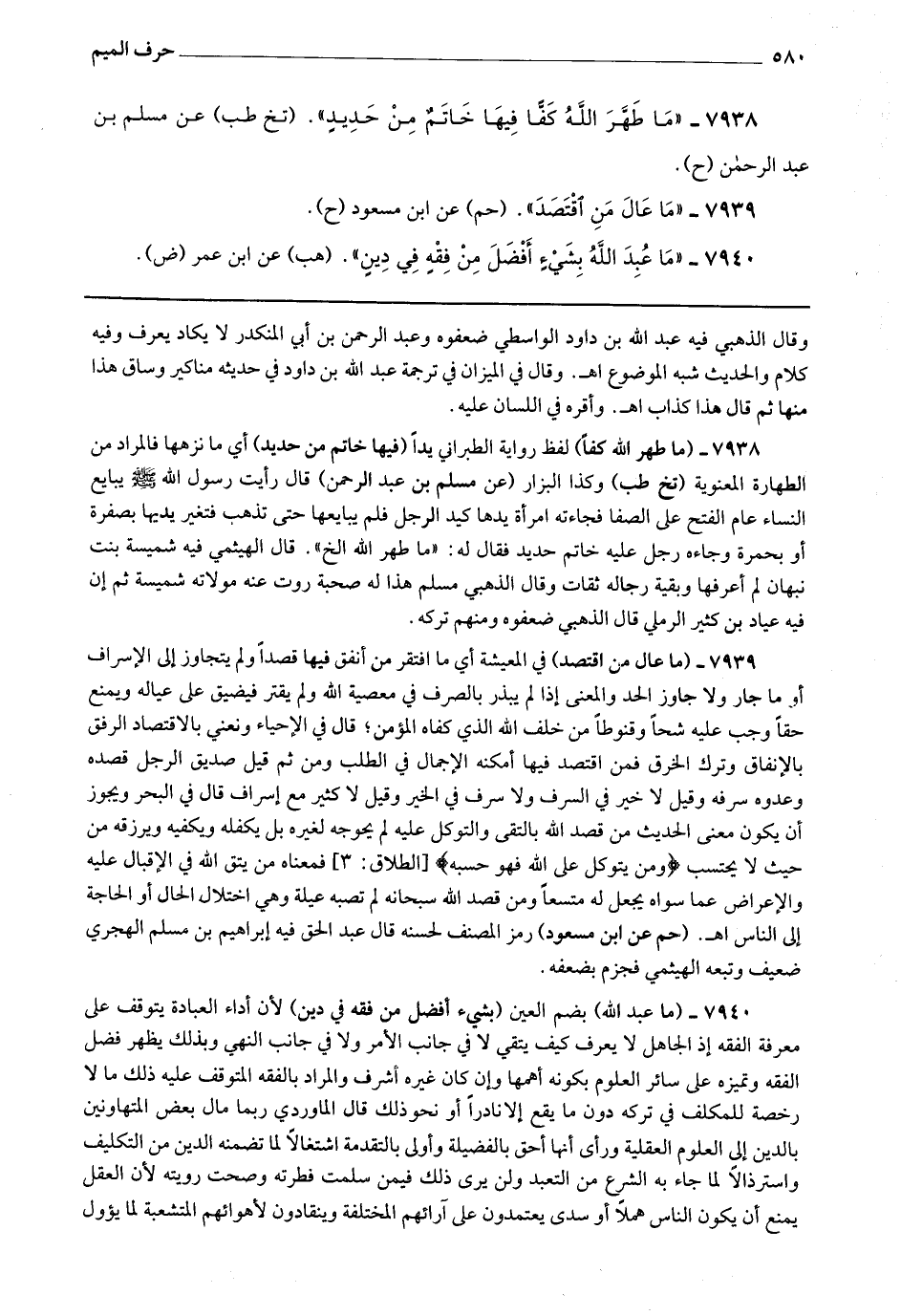 7939 - (ما عال من اقتصد) في المعيشة أي ما افتقر من أنفق فيها قصدا ولم يتجاوز إلى الإسراف أو ما جار ولا جاوز الحد والمعنى إذا لم يبذر بالصرف في معصية الله ولم يقتر فيضيق على عياله ويمنع حقا وجب عليه شحا وقنوطا من خلف الله الذي كفاه المؤمن ، قال في الإحياء : نعني بالاقتصاد الرفق بالإنفاق وترك الخرق فمن اقتصد فيها أمكنه الإجمال في الطلب ومن ثم قيل : صديق الرجل قصده وعدوه سرفه وقيل : لا خير في السرف ولا سرف في الخير وقيل : لا كثير مع إسراف قال في البحر : ويجوز أن يكون معنى الحديث من قصد الله بالتقى والتوكل عليه لم يحوجه لغيره بل يكفله ويكفيه ويرزقه من حيث لا يحستب * (ومن يتوكل على الله فهو حسبه) * فمعناه من يتق الله في الإقبال عليه والإعراض عما سواه يجعل له متسعا [ ص 455 ] ومن قصد الله سبحانه لم تصبه عيلة وهي اختلال الحال أو الحاجة إلى الناس اه.