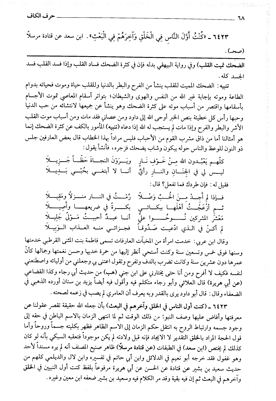 6423 - (كنت أول الناس في الخلق وآخرهم في البعث) بأن جعله الله حقيقة تقصر عقولنا عن