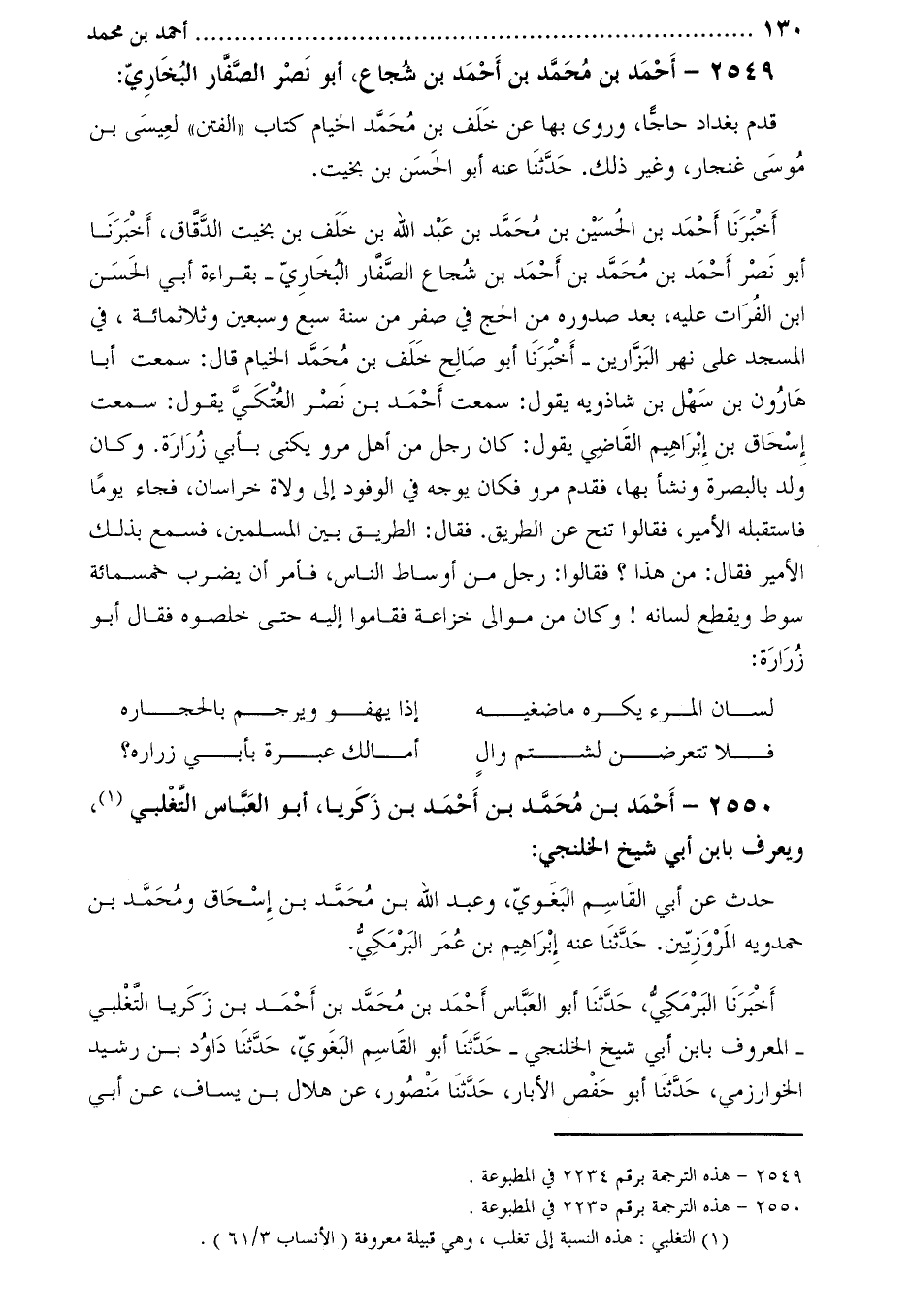 2550-[2] أَحْمَد بْن مُحَمَّد بْن أَحْمَد بْن زكريا، أَبُو العباس التغلبي [3] ، ويعرف بابن أَبِي شيخ الخلنجي: