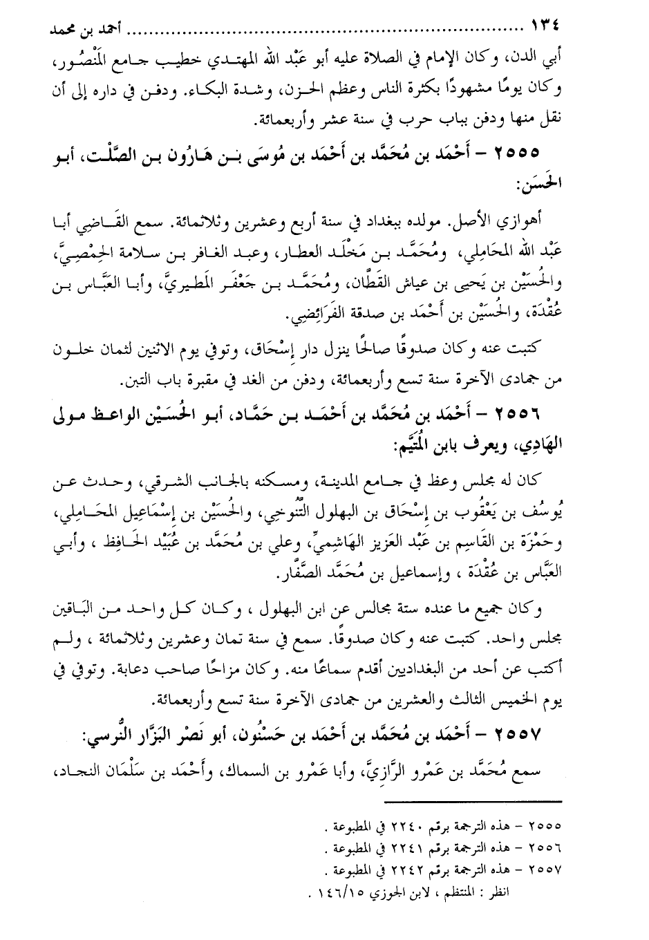 2556- أَحْمَد بْن مُحَمَّد بْن أَحْمَد بْن حَمَّادٍ، أَبُو الحسين الواعظ مولى الهادي، ويعرف بابن المتيم [2] :