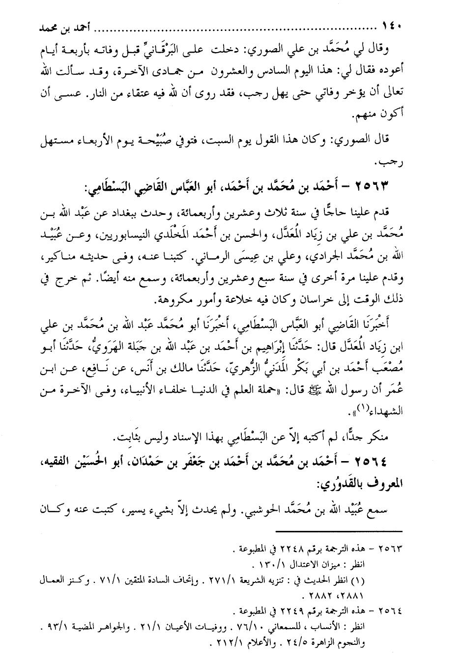2564- أَحْمَد بْن مُحَمَّد بْن أَحْمَد بْن جَعْفَرِ بْن حمدان، أَبُو الحسين الفقيه، المعروف بالقدوري [3] :