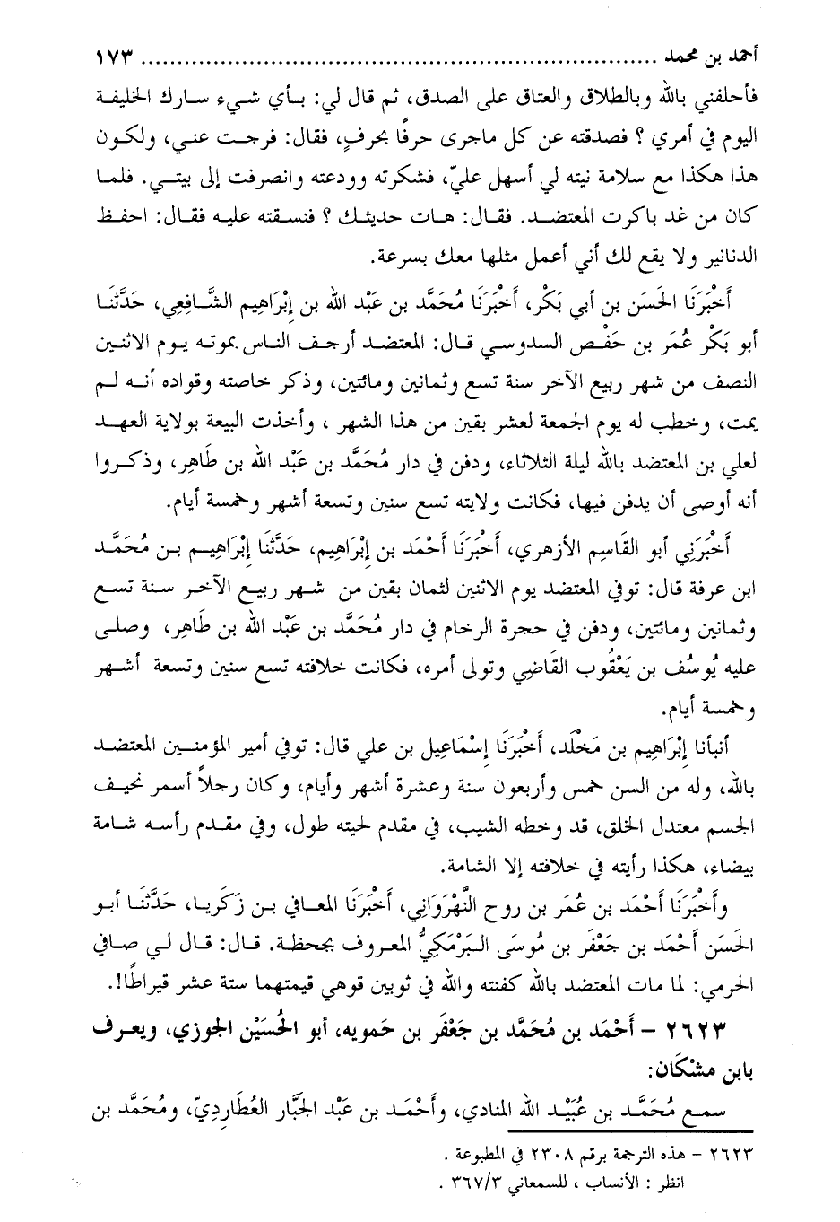 2623- أَحْمَد بْن مُحَمَّد بْن جعفر بْن حمويه، أَبُو الحسين الجوزي، ويعرف بابن مشكَانَ [1] :
