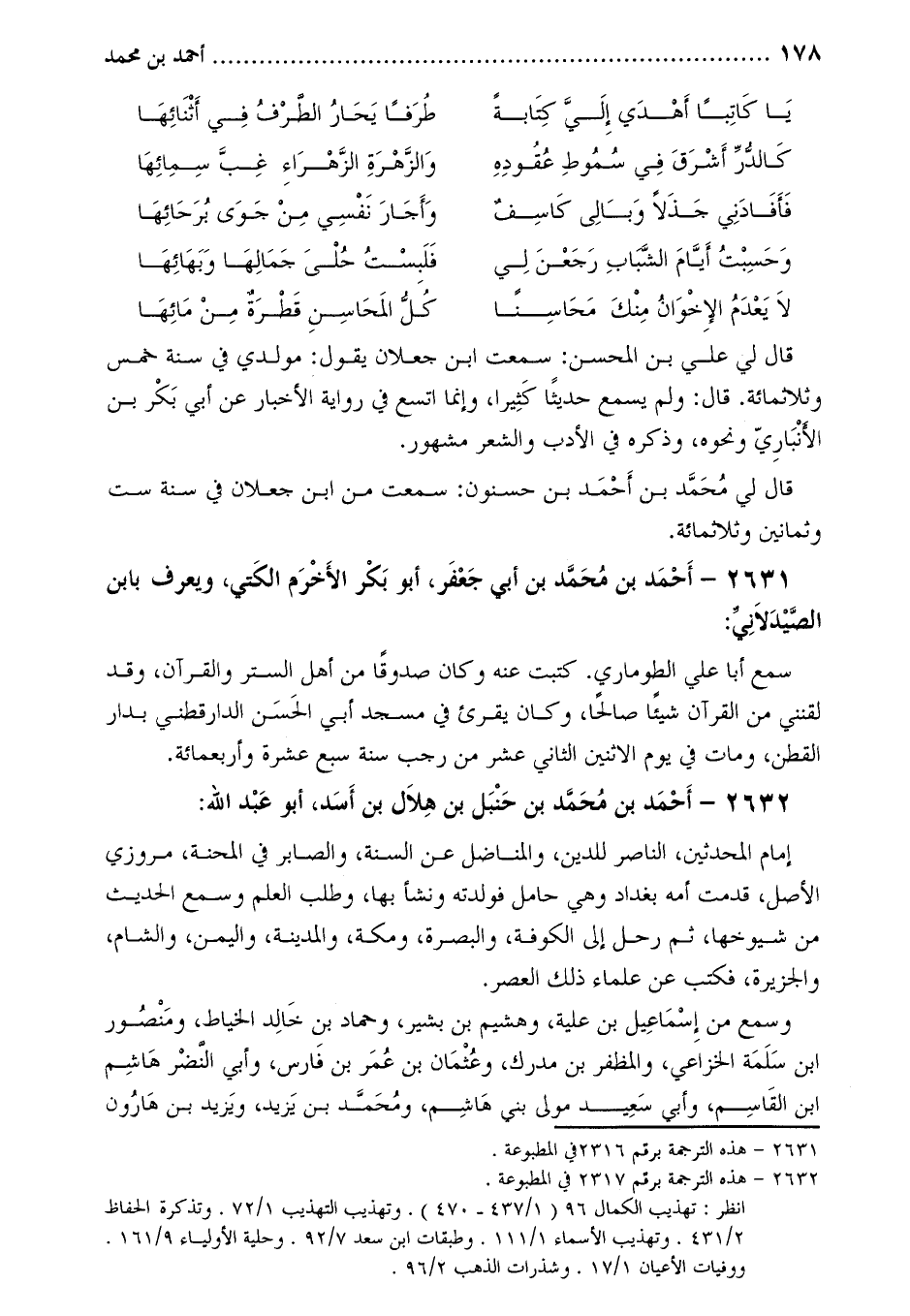 2632- أَحْمَد بْن مُحَمَّد بْن حَنْبَل بْن هلال بْن أسد، أَبُو عَبْد اللَّه [2] :