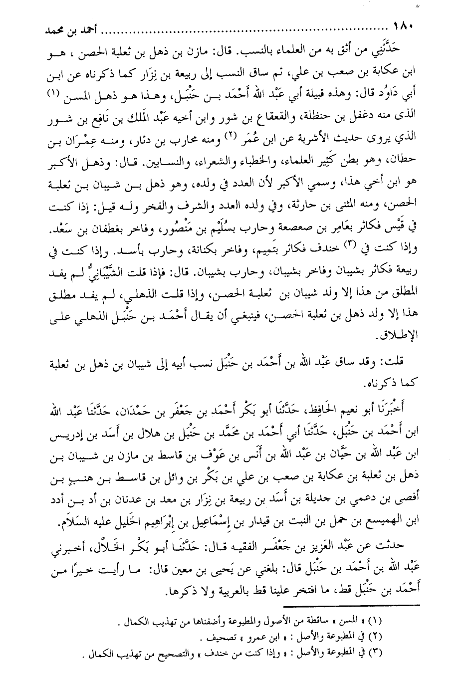 قلت: وقد ساق عَبْد اللَّه بْن أَحْمَد بْن حَنْبَل نسب أَبِيهِ إِلَى شيبان بْن ذهل بْن ثعلبة كما ذكرناه.