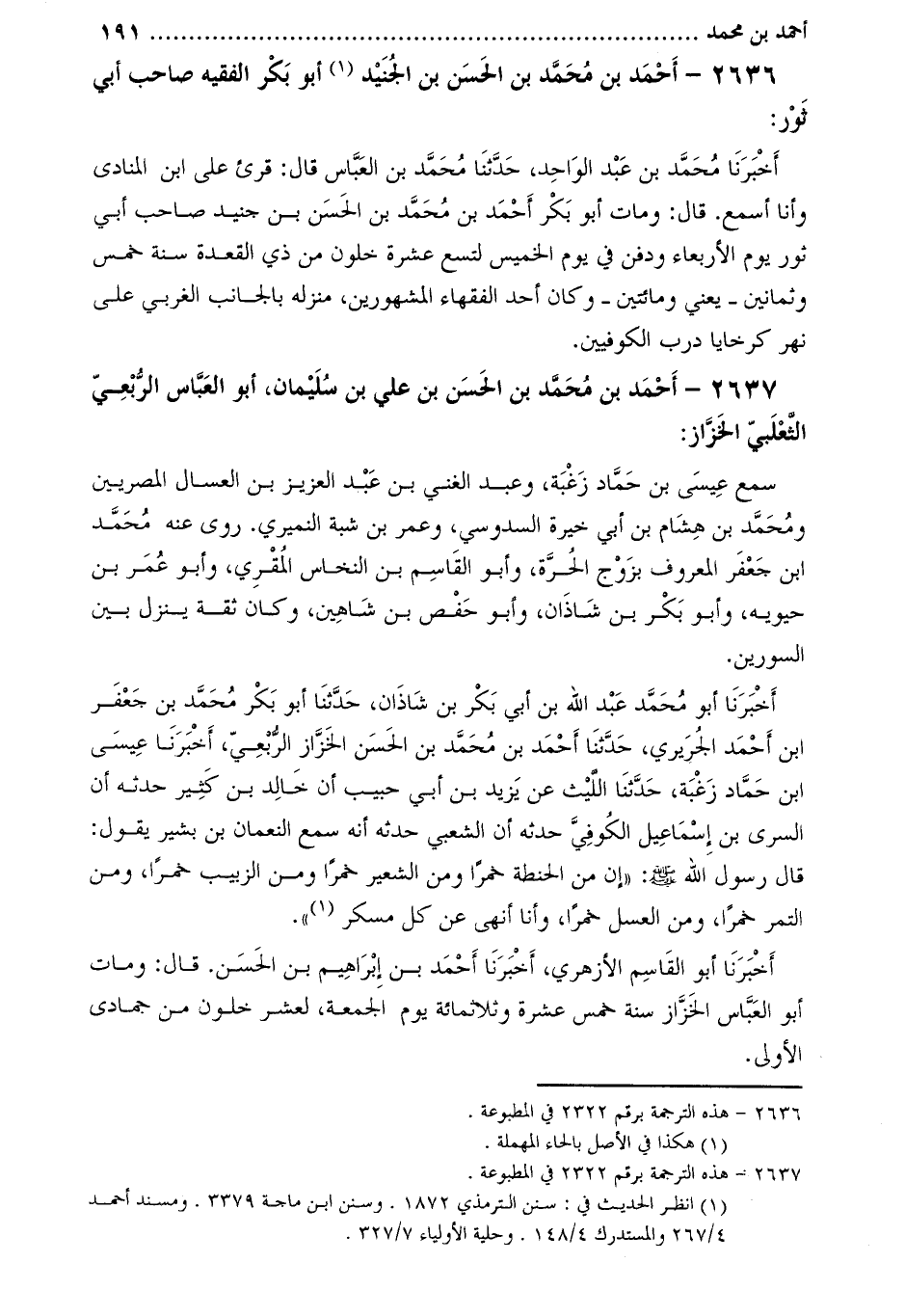 2636-[1] أَحْمَد بْن مُحَمَّد بْن الحسن بْن الجنيد [2] أَبُو بَكْر الفقيه صاحب أَبي ثور: