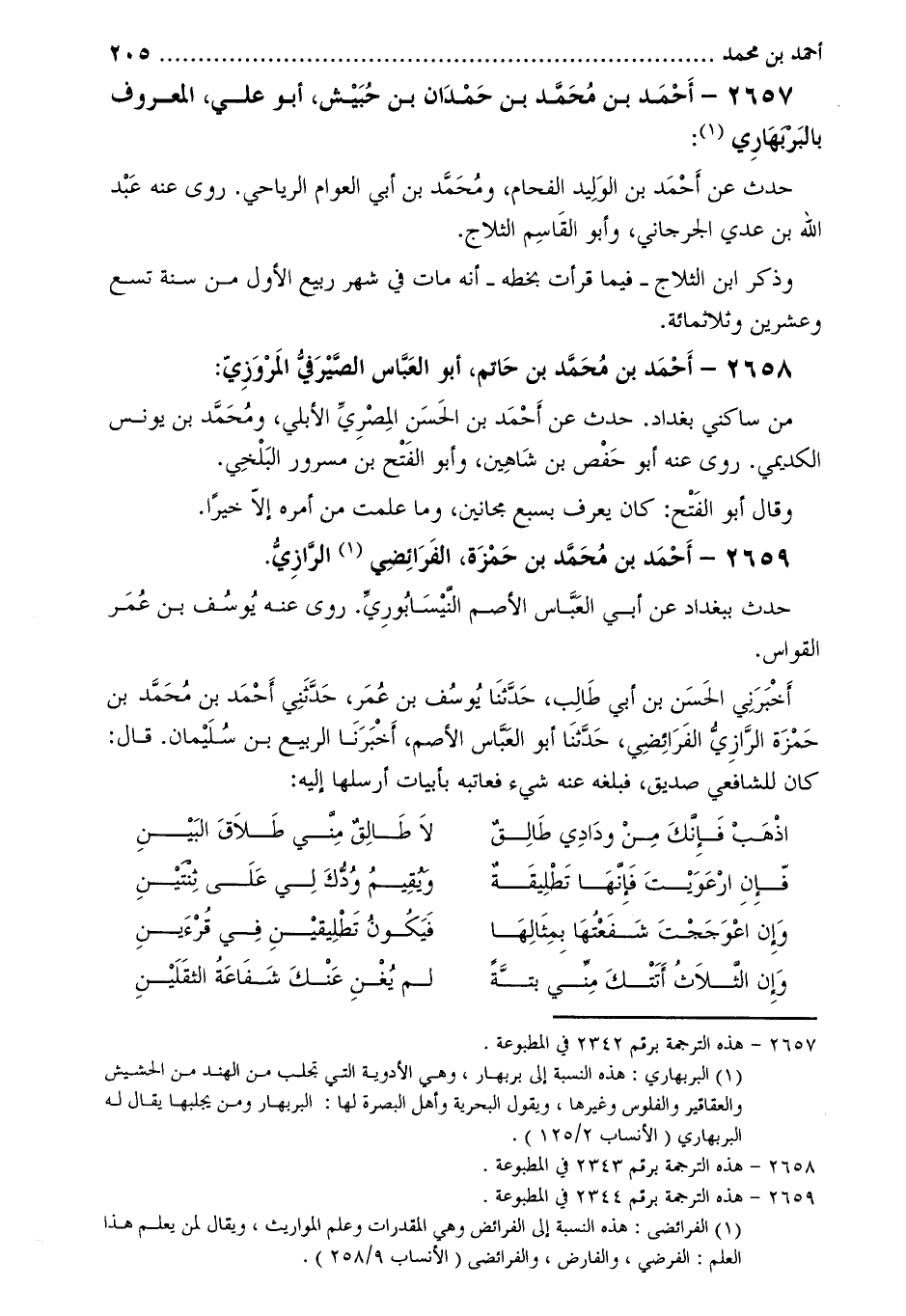 2657-[1] أَحْمَد بْن مُحَمَّد بْن حمدان بْن حبيش، أَبُو علي، المعروف بالبربهاري [2] :
