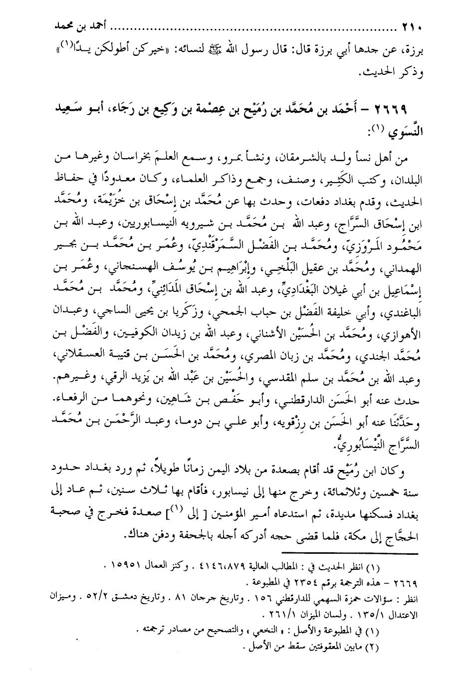 2669-[2] أَحْمَد بْن مُحَمَّد بْن رميح بْن عصمة بْن وكيع بْن رجاء، أَبُو سعيد النّسوي [3] :