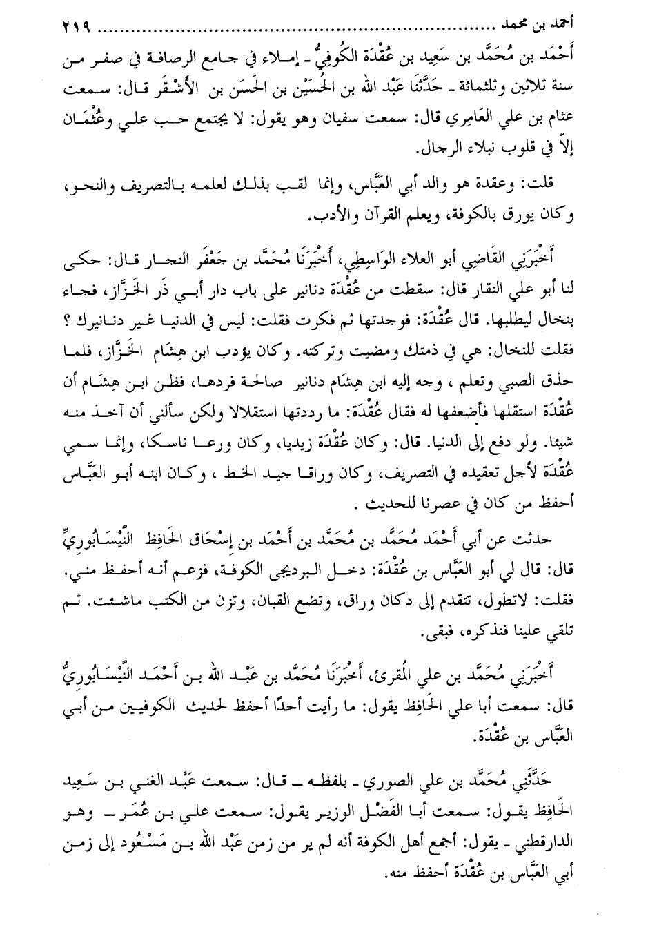 قلت: وعقدة هو وَالد أَبِي العباس، وإنما لقب بذلك لعلمه بالتصريف وَالنحو، وكَانَ يورق بالكوفة، ويعلم القرآن وَالأدب.