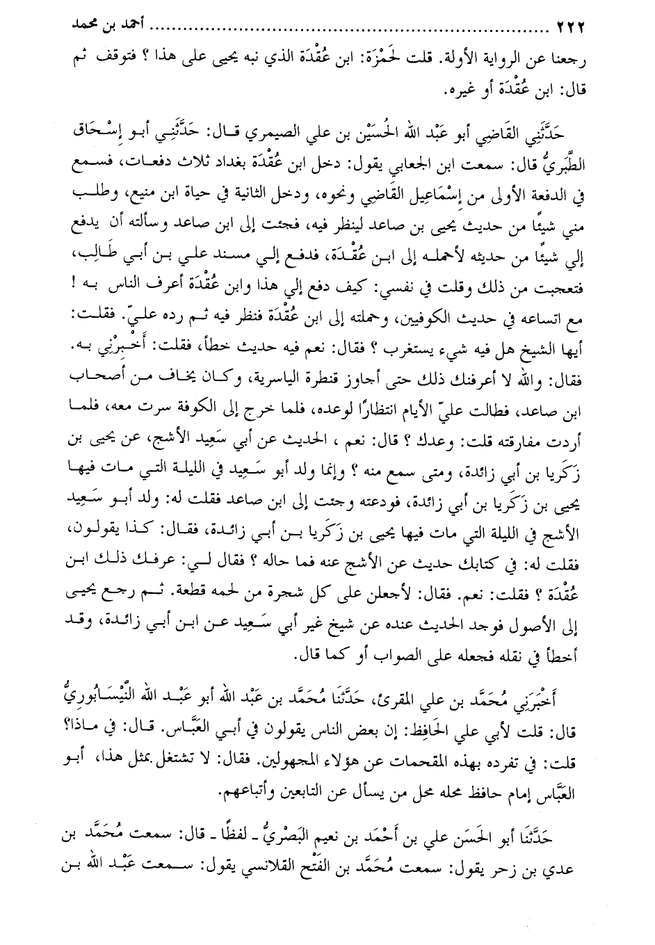 رجعنا عَنِ الرواية الأولة. قلت لحمزة: ابْن عقدة الذي نبه يَحْيَى علي هذا؟ فتوقف ثم قَالَ: ابْن عقدة أو غيره.