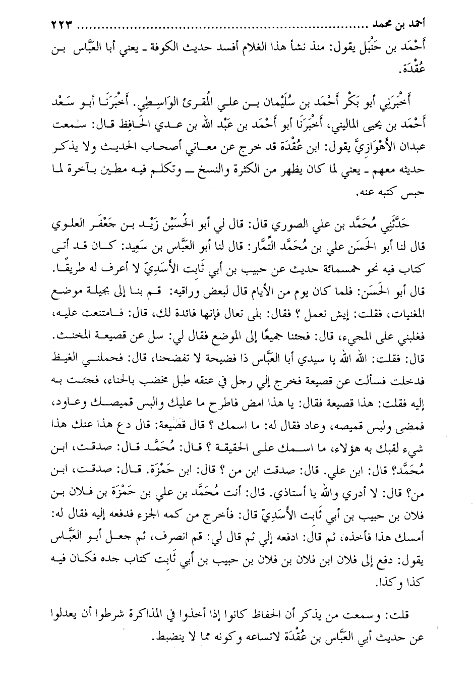 قلت: وسمعت من يذكر أن الحفاظ كَانُوا إذا أخذوا فِي المذاكرة شرطوا أن يعدلوا عَن حديث أبي العبّاس بن عقدة لاتساعه وكونه مما لا ينضبط.