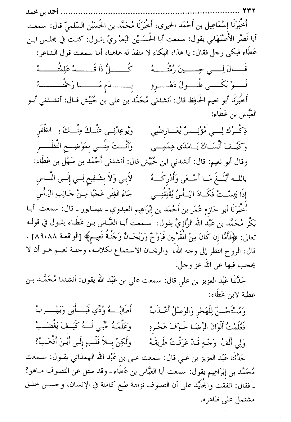 أَخْبَرَنَا أَبُو نعيم الحافظ قَالَ: أنشدني مُحَمَّد بْن علي بْن حبيش قَالَ: أنشدني أَبُو العباس بْن عطاء: