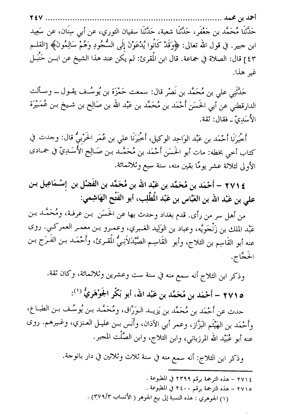 2715-[2] أَحْمَد بْن مُحَمَّد بْن عَبْد اللَّه، أَبُو بَكْر الجوهري [3] :