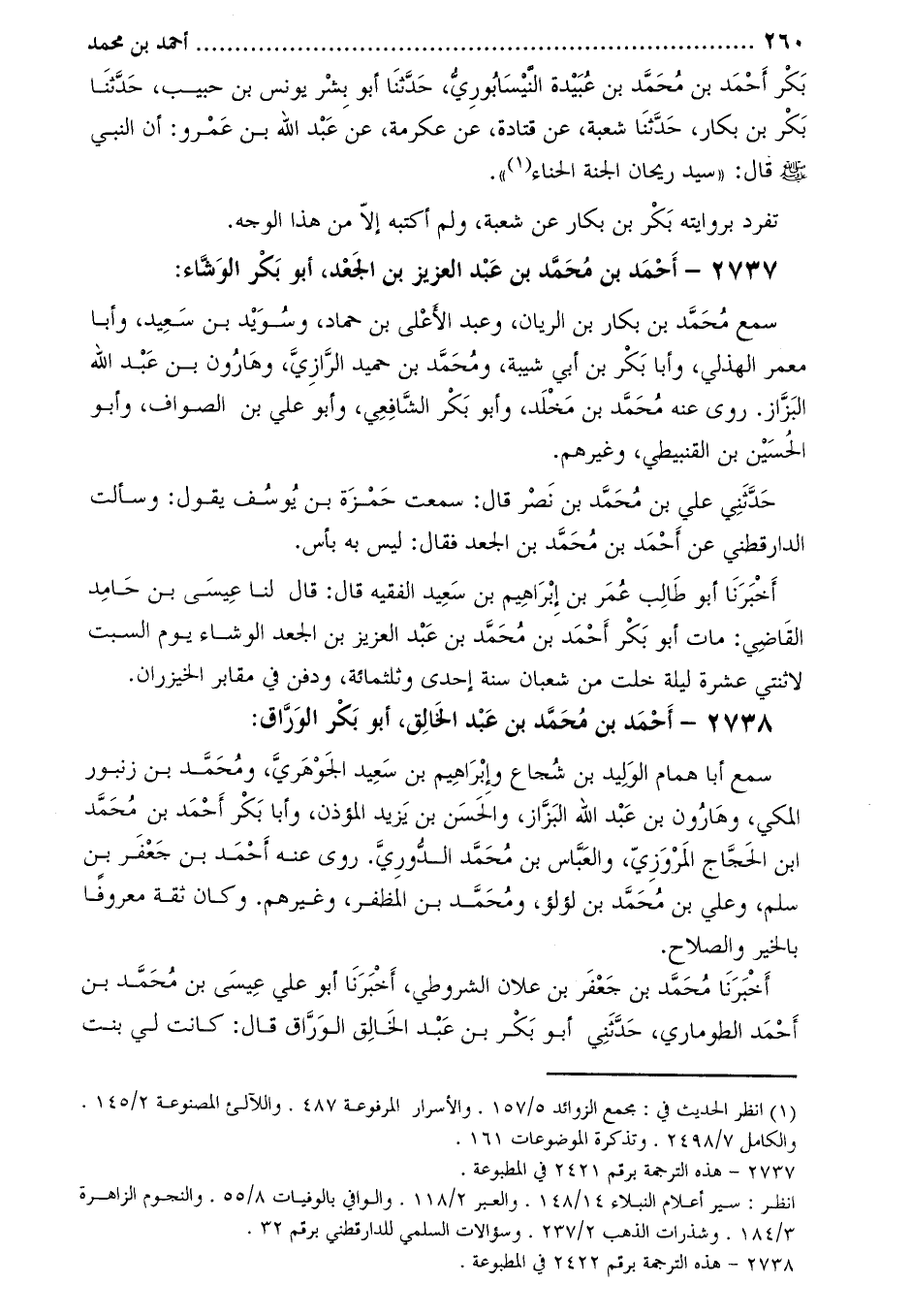 2737- أَحْمَد بْن مُحَمَّد بْن عَبْد العزيز بْن الجعد، أَبُو بَكْر الوشاء [2] :