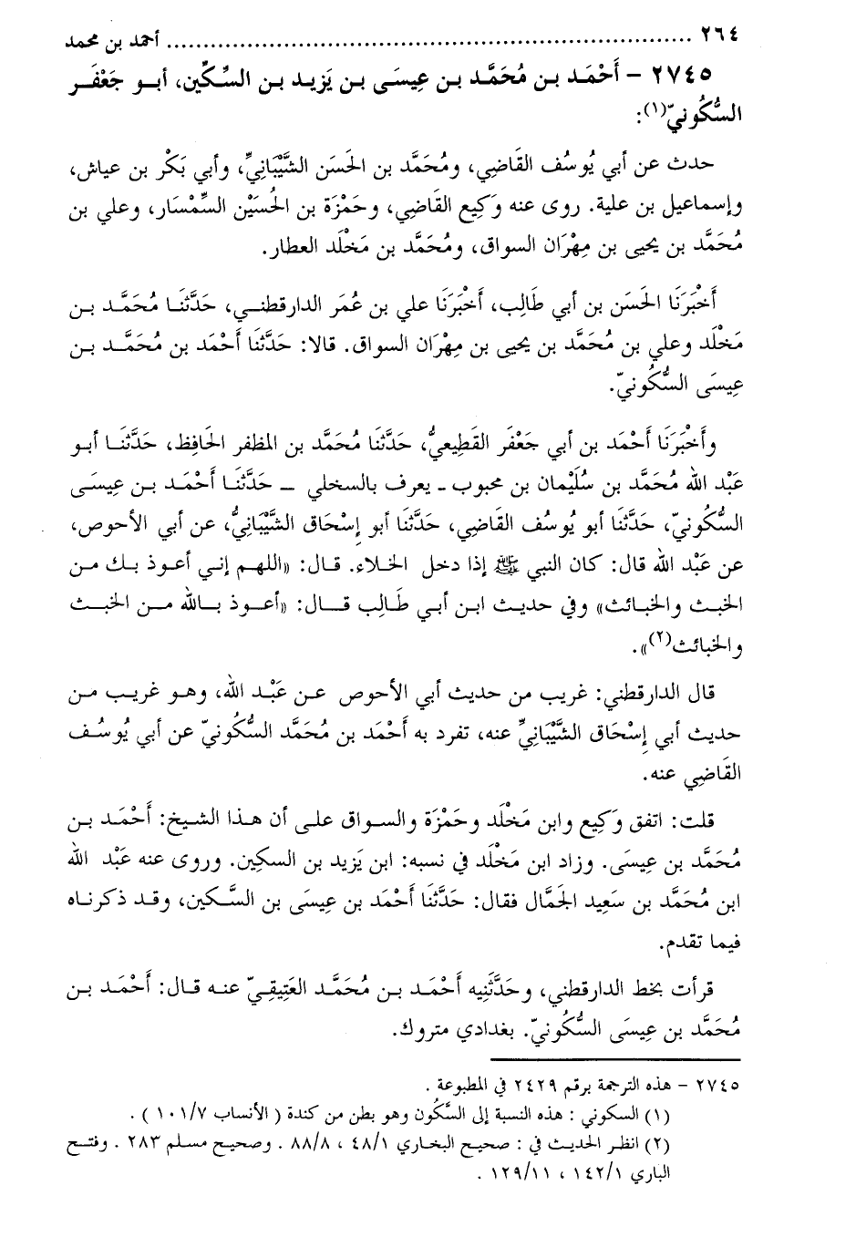 2745-[1] أَحْمَد بْن مُحَمَّد بْن عيسى بْن يزيد بْن السكين، أَبُو جَعْفَر السكوني [2] :