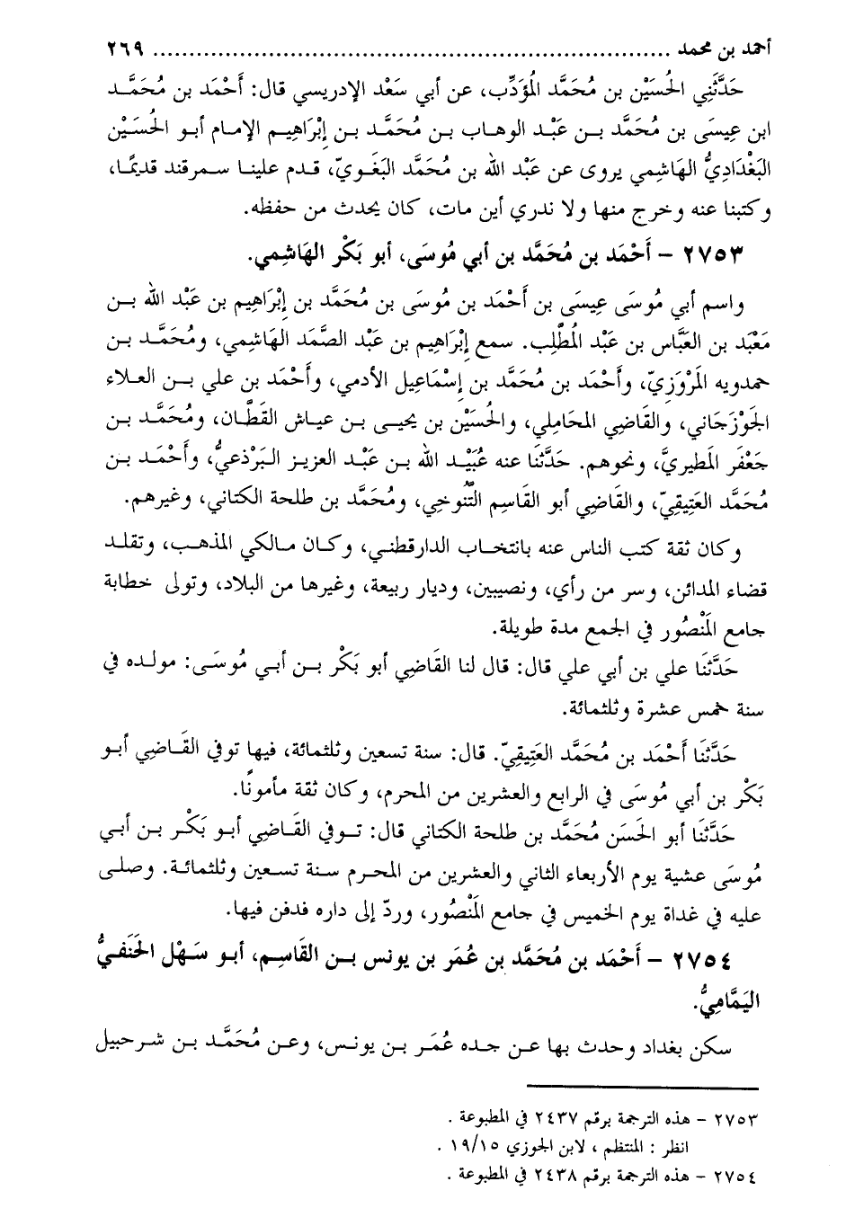 2753- أَحْمَد بْن مُحَمَّد بْن أَبِي موسى، أَبُو بَكْر الهاشمي [1] .