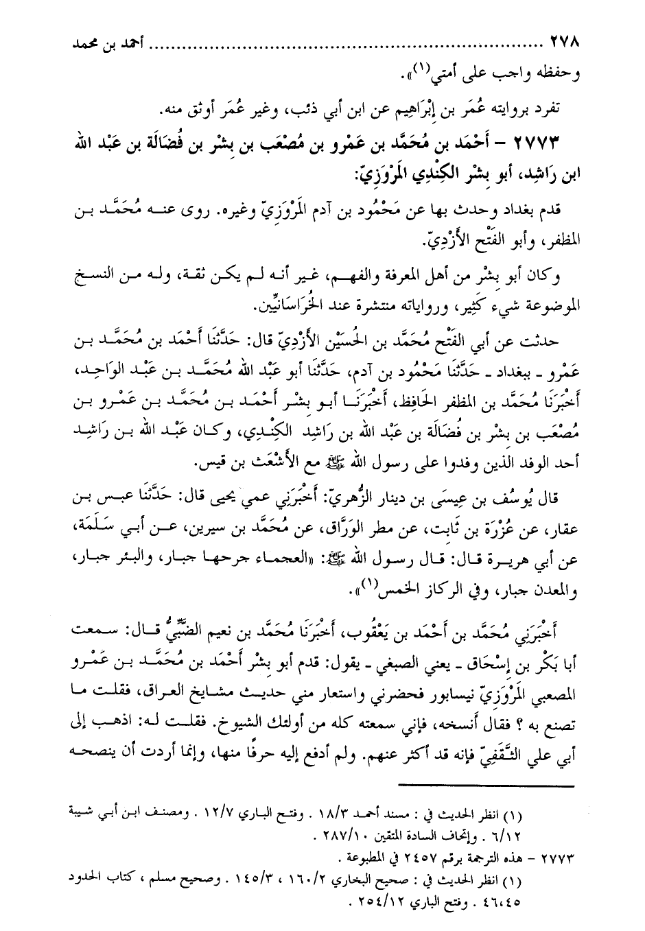2773- أَحْمَدَ بْنِ مُحَمَّدِ بْنِ عَمْرِو بْنِ مُصْعَبِ بن بشر بن فضالة بن عبد الله ابن راشد، أَبُو بشر الكندي الْمَرْوَزِيّ [2] :