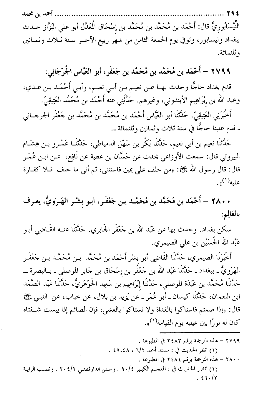 . 2800- أَحْمَد بْن مُحَمَّد بْن مُحَمَّد بْن جَعْفَر، أَبُو بشر الهروي، يعرف بالعالم [3] :