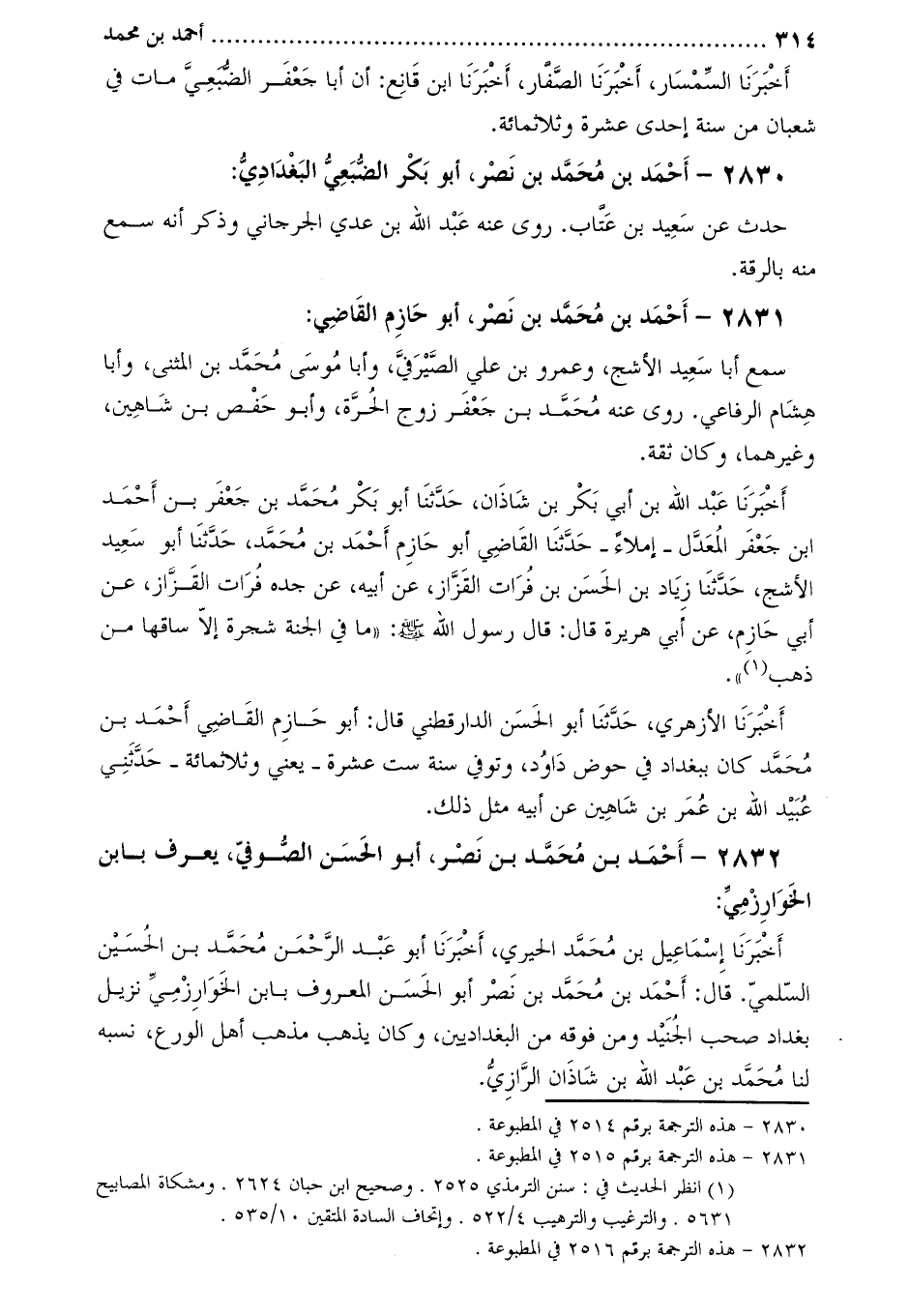2832- أَحْمَد بْن مُحَمَّد بْن نصر، أَبُو الْحَسَن الصوفِي، يعرف بابن الخوارزميّ [4] :