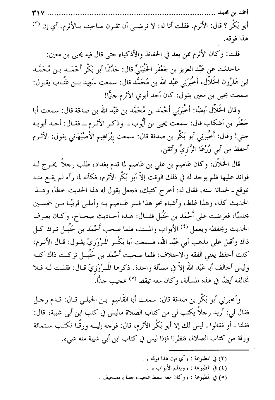 أَبُو بَكْر؟ قَالَ: الأثرم. فقلت أنا له: لا نرضى أن تقرن صاحبنا بالأثرم، أي إن [1] هذا فوقه.