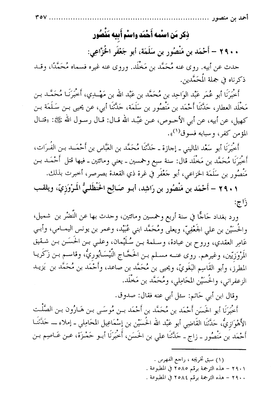 2901- أحمد بن منصور بن راشد، أبو صالح الحنظلي المروزي، ويلقب زاج [3] :