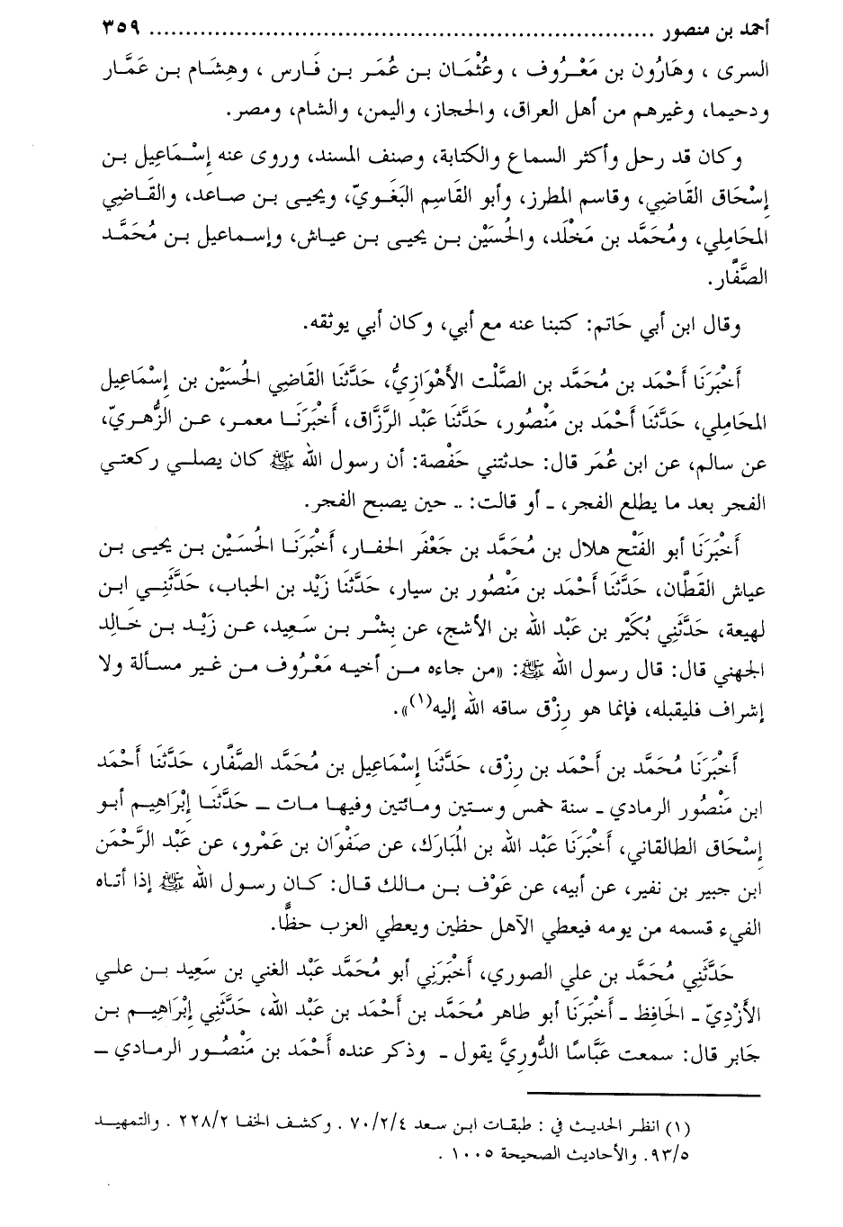 [1] انظر الحديث في: طبقات ابن سعد 4/2/70. وكشف الخفا 2/228. والتمهيد 5/93. والأحاديث الصحيحة 1005