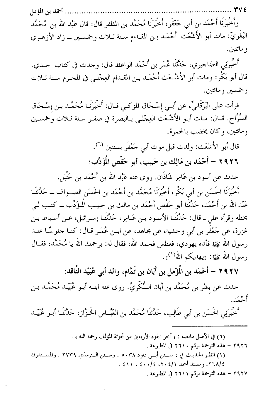 [4] 2927- هذه الترجمة برقم 2611 في المطبوعة