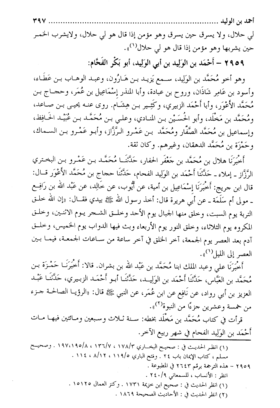 . 2959- أَحْمَد بْن الوليد بْن أَبِي الوليد، أَبُو بَكْر الفحام [2] :