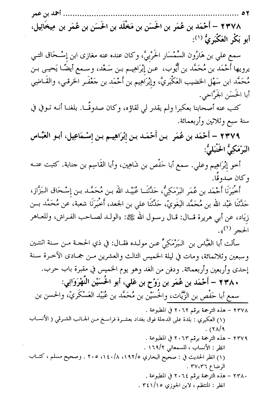 2378-[1] أَحْمَد بْن عُمَر بْن الْحَسَن بْن مَخْلَد بْن الْحَسَن بْن عُمَر بْن ميخائيل، أَبُو بَكْر العكبري [2] :