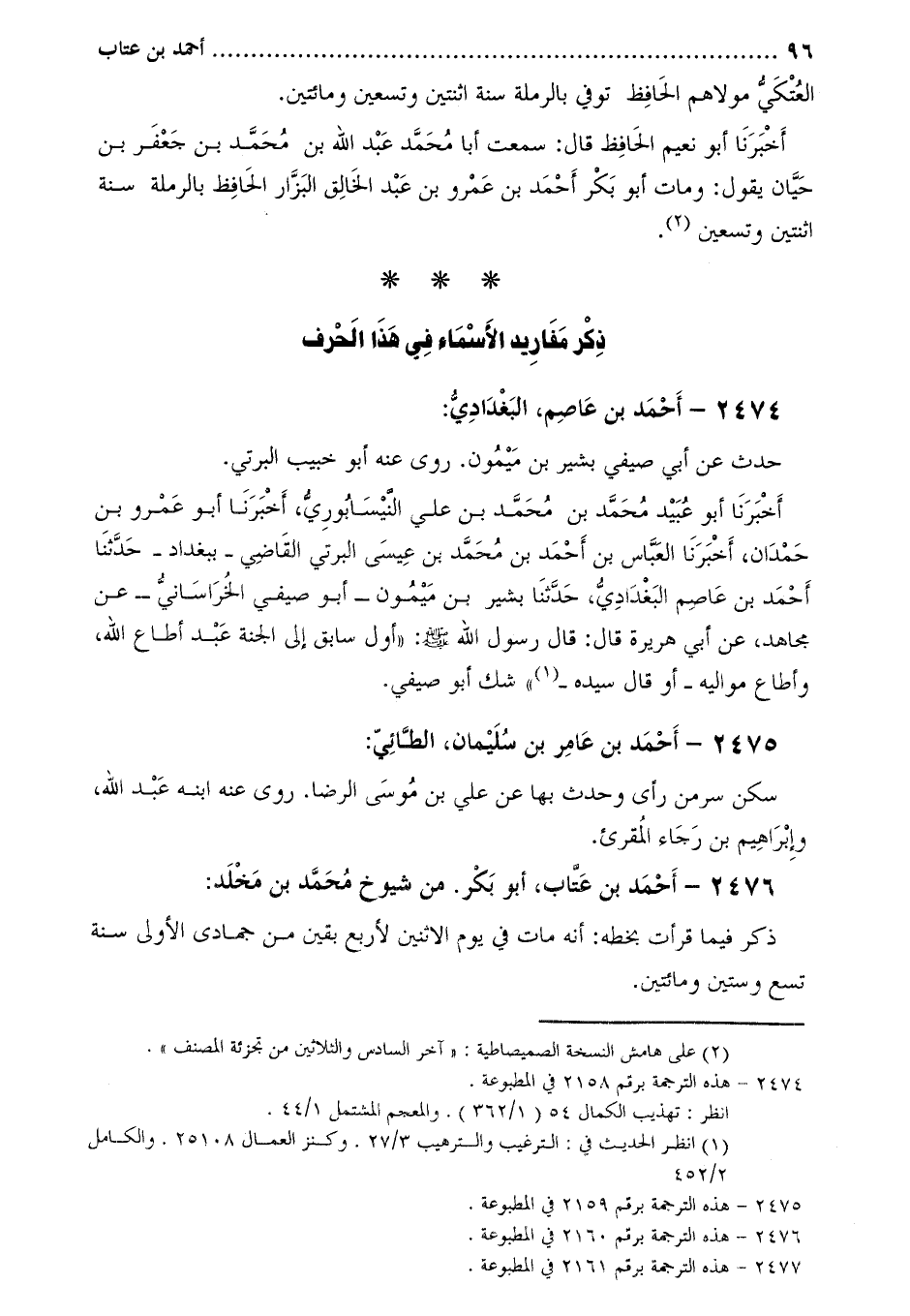 2476- أَحْمَد بْن عتاب، أَبُو بَكْر. من شيوخ مُحَمَّد بْن مَخْلَد [5] :