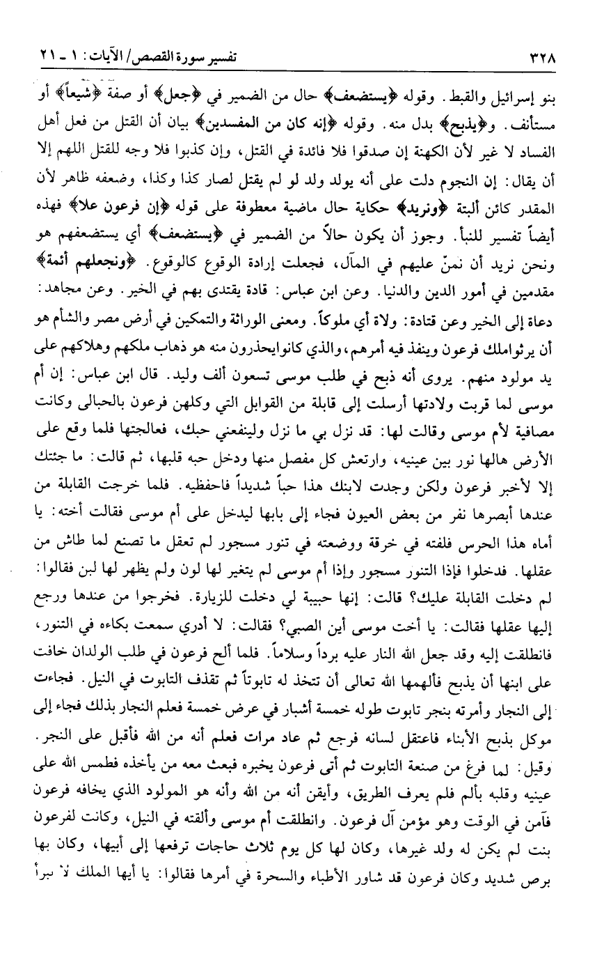 بنو إسرائيل والقبط. وقوله يَسْتَضْعِفُ حال من الضمير في جَعَلَ أو صفة شِيَعاً أو مستأنف. ويُذَبِّحُ بدل منه. وقوله إِنَّهُ كانَ مِنَ الْمُفْسِدِينَ بيان أن القتل من فعل أهل الفساد لا غير لأن الكهنة إن صدقوا فلا فائدة في القتل، وإن كذبوا فلا وجه للقتل اللهم إلا أن يقال: إن النجوم دلت على أنه يولد ولد لو لم يقتل لصار كذا وكذا، وضعفه ظاهر لأن المقدر كائن البتة وَنُرِيدُ حكاية حال ماضية معطوفة على قوله إِنَّ فِرْعَوْنَ عَلا فهذه أيضا تفسير للنبأ. وجوز أن يكون حالا من الضمير في يَسْتَضْعِفُ أي يستضعفهم هو ونحن نريد أن نمنّ عليهم في المآل، فجعلت إرادة الوقوع كالوقوع. وَنَجْعَلَهُمْ أَئِمَّةً مقدمين في أمور الدين والدنيا. وعن ابن عباس: قادة يقتدى بهم في الخير. وعن مجاهد: